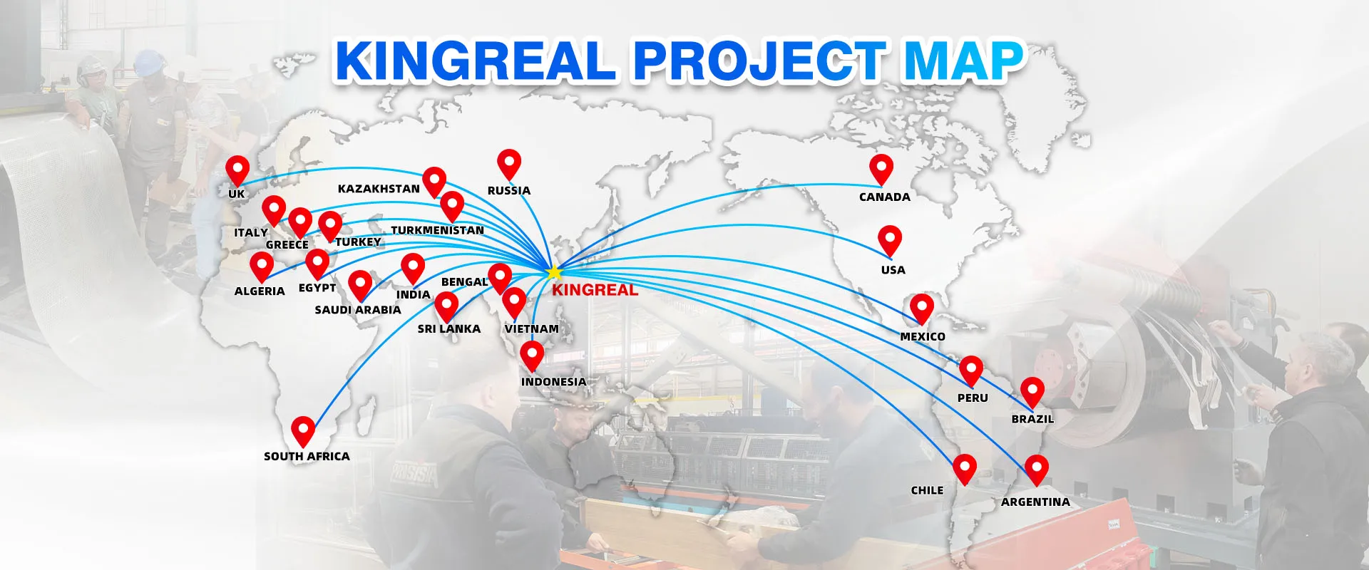 In 2023, KINGREAL MACHINERY has exported hundreds of machines to more than 30 countries including Russia, India, Greece, Chile, Brazil, Turkey, UAE and Vietnam. KINGREAL MACHINERY also held two exhibitions in Russia and Guangzhou, China, which were well recognized by our customers.